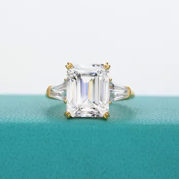 14K Gold Emerald Cut Moissanite Ring 4ct for Women Engagement Wedding Band