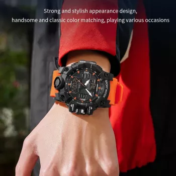 Dual Display Sports Watch for Men - Waterproof, Shock Resistant with Multi-Function Digital Display