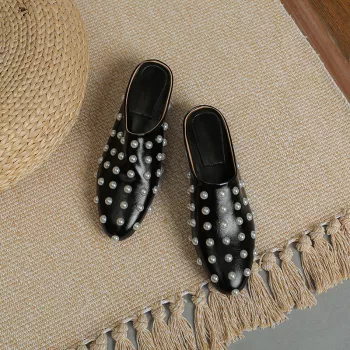Genuine Leather Rivet Sandals for Women – Open Toe Mid Heels Summer Mules