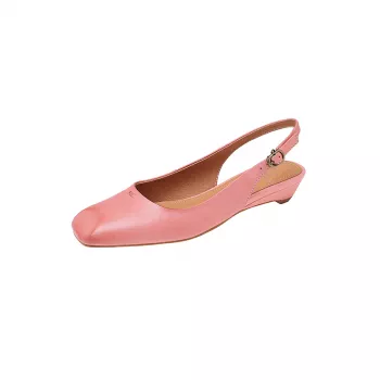 Genuine Leather Square Toe Summer Sandals for Women with Low Retro Heel