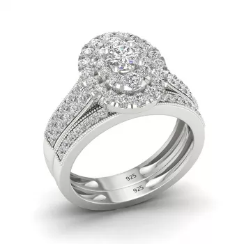 Luxury Moissanite Engagement Ring Set - 2 Piece Solid Sterling Silver 925 Wedding Jewelry for Women