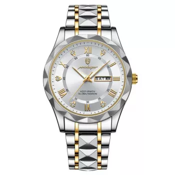 Luxury Stainless Steel Quartz Men's Watch with Luminous Date Week Display