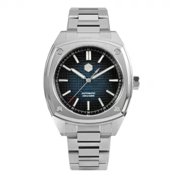 Men's 39.5mm Square Automatic Watch with Stainless Steel Band & Textured Dial