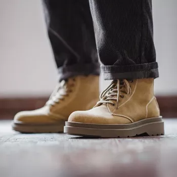 Men's Cow Suede Work Boots – Warm Mid-Calf Lace-Up Winter Shoes with Rubber Sole
