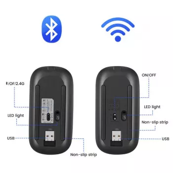 Wireless & Bluetooth Dual Mode Silent Mouse with Adjustable DPI & Rechargeable Battery